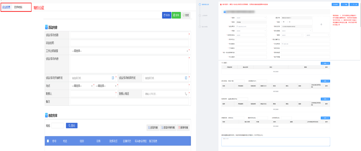 专家管理:对专家申请、会议安排、工作业绩维护、专家信息变更、组织会议、专家查询进行综合管理。