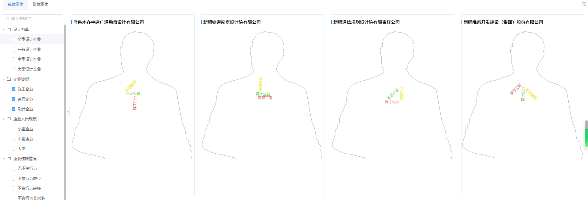 5、画像分析:可根据自身需求定制,自动生成企业画像、人员画像、项目画像等。