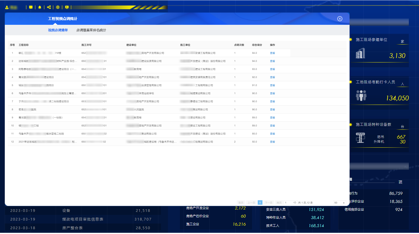 根据点调结果对被点调的项目进行排名,通过视频点调的打分结果及排名反映各企业安全生产主体责任落实情况,对于排名较低的进行重点监管。